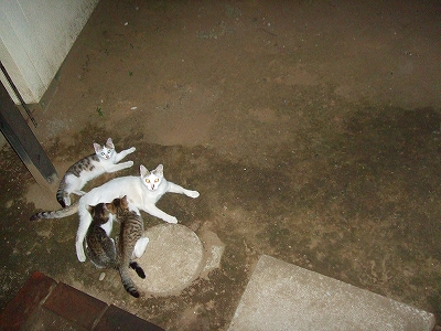 今我が家のお庭に住み着いている家族の猫ちゃん達です 最近になって仔猫も登場したんです 3匹はお庭を駆け回り木登りをして元気に遊んでいます お母さんのミルクをいっぱい飲んで食べてエネルギーいっぱいって感じです もう猫ちゃんの面倒は終わりかな?と思っていたらまた面倒をみさせてもらうことになりました^^
