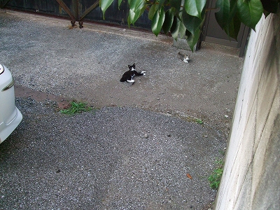 これ以上近づくと逃げちゃうので。。。右上はきじトラです もう一匹はのら黒みたいな猫ちゃんなんですよ^^