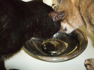 屋上から帰ってきてお水も一緒に飲むようになって。。