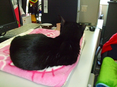あまったれ君は車がいっぱい走っている方の道に面した場所であったか~くして寝ています^^