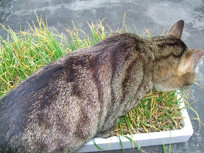 屋上に猫ちゃん用草も植えてくれているのでCOOとあまったれはパクパクそして座っちゃって草が猫ちゃん達の下敷きになっていました。よほど気持ちよくおひさまを楽しんでいたんでしょう