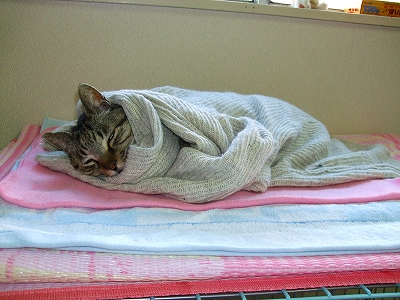 昼間はこんな状態で甘ったれ君は寝ています^^