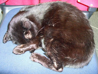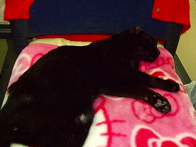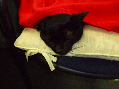 COOちゃんの顔わかりますか?ここで寝るのも日課になりました。私の座る部分はちょっとだけ。。。(笑!)
