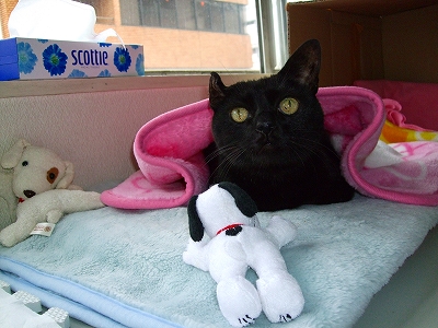 ハウスの外でキティーの毛布かけて寝たり起きたりのんびりしているCOOです