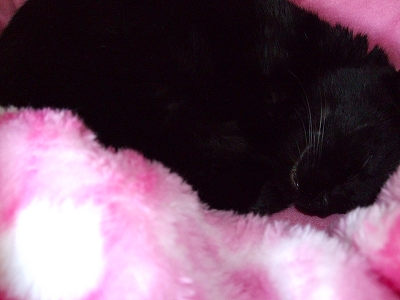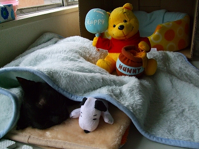 お外の毛布の方の下にホカロン入れてあるので,暖かいのでしょう^^その場所から動きませ~ん