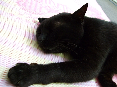 餌をあげたらパクパクと食べたりお水飲んだりしたのでホットしました。朝のCOOの行事が終わりのび太チャンになって^^寝ています。