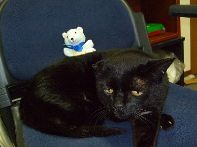 COOちゃんは、朝からぐっすり寝ています。このときは、お水と残ったご飯を食べ終わった時です。くまさんが乗っていてもまったく気がつかないでねていました^^