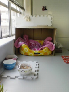 もう一つベットがあって、ピンクのイルカさんベットです。