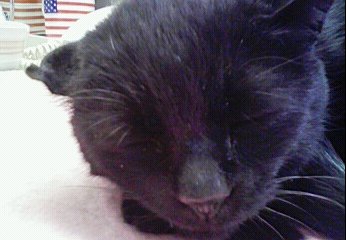 餌を待って、甘えているcooです。そのあとは、ずーっと夕方まで寝ています。時々カリカリを鼻の側に持っていくと、口を開けて食べます。カリカリと音をたてて、もう12歳なので「シニア用」をあげてます。
